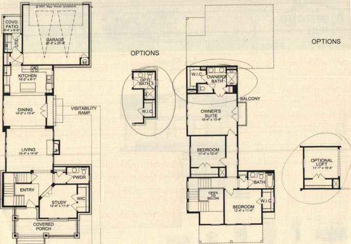 Inside, the home has the optional third bathroom downstairs which means that the downstairs study could be reconfigured as a guest bedroom. The upstairs boasts the optional loft, which could be a third or fourth bedroom. The master is large, and features a balcony overlooking the outdoor decks, and a master bathroom with a great closet. Here’s a recap: