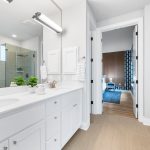 Upstairs, a versatile loft creates extra breathing room – a reading lounge, homework zone, or play area depending on your needs. The primary suite is bright and generously sized, with a spa-inspired bathroom that includes a soaking tub, walk-in shower, and a large walk-in closet with custom built-ins. An additional guest bedroom and full bath round out the upper level.